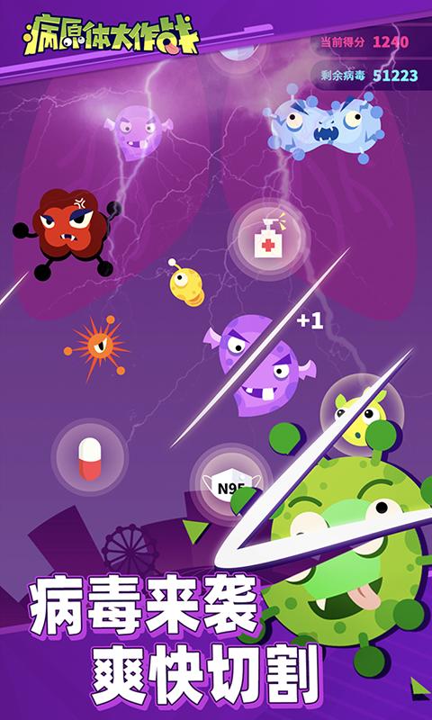 《防疫大作战》是一款益智手指动作游戏。玩家可以使用手中的手术刀击败各种能力的病毒。