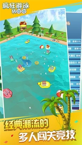 《疯狂游泳转圈圈》是一款休闲有趣的水上竞技游戏。游戏拥有清新简洁的游戏画面、生动逼真的游戏场景、多样的游戏冒险关卡、丰富多样的游戏冒险道具,帮助玩家更轻松地闯关。游戏的玩法非常简单有趣。有兴趣的玩家可以下载尝试一下。